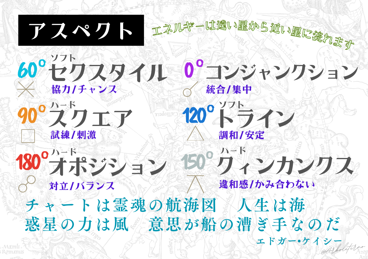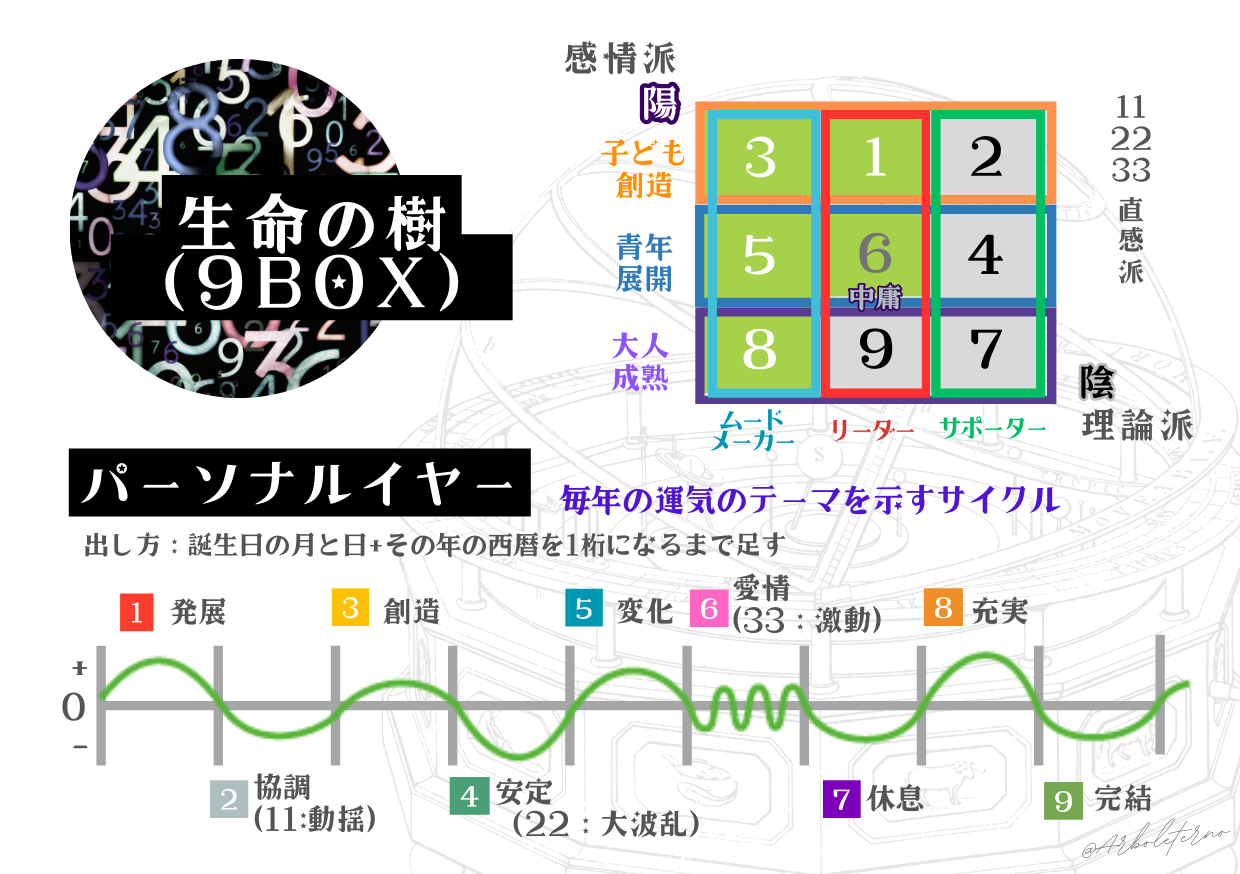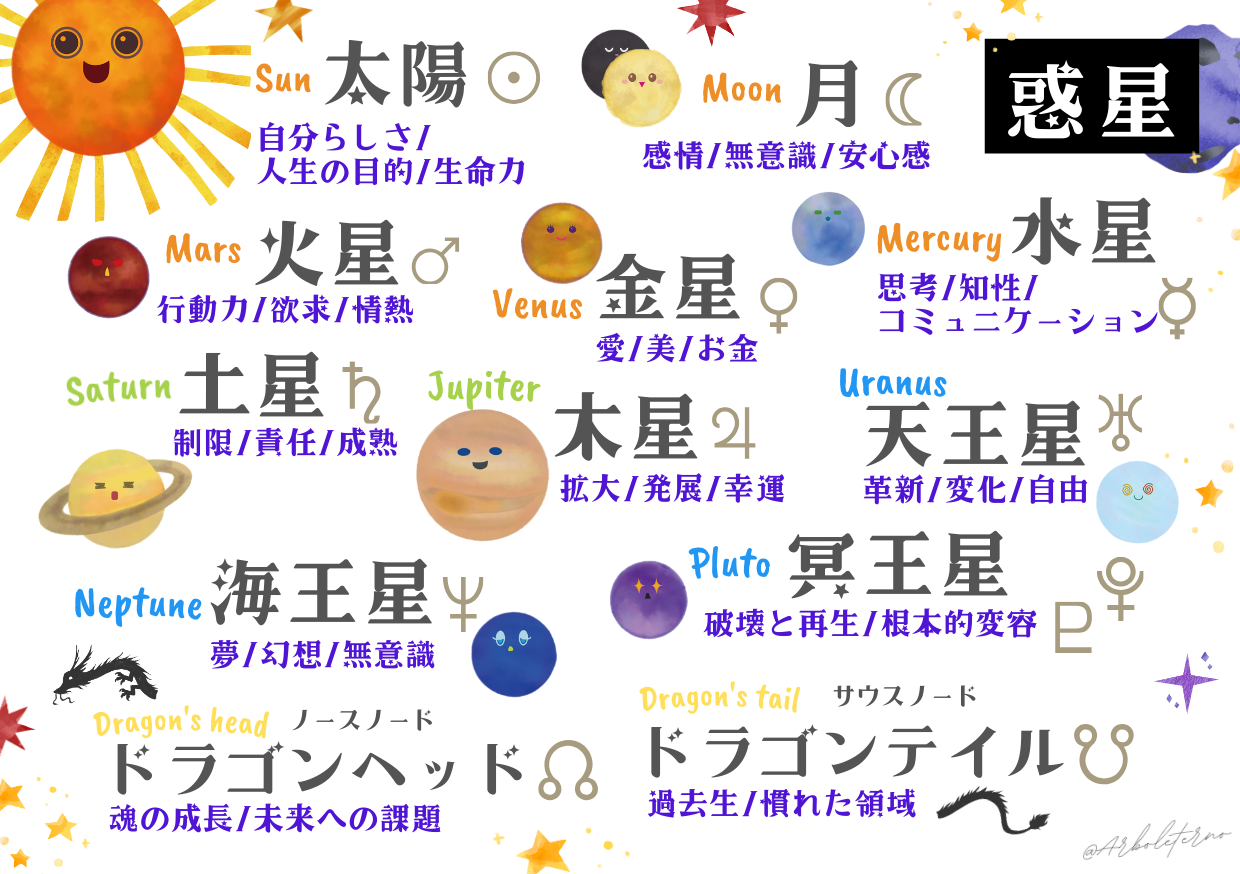 惑星・ハウス・サイン・アスペクト・数秘術・9BOX・パーソナルイヤーなど。